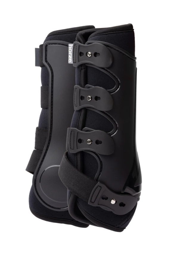 Te ochraniacze łączą funkcję ochraniaczy skokowych i ochraniaczy ujeżdżeniowych, zapewniając wszechstronną ochronę dla Twojego konia. Cztery podwójne elastyczne paski z klamrą i zapięciem na bolec gwarantują bezpieczne i regulowane dopasowanie. Ukształtowany, perforowany neopren z podszewką zapewnia optymalną oddychalność i odprowadzanie wilgoci. Miękka wyściółka i materiał amortyzujący wstrząsy gwarantują najwyższy komfort i ochronę. Łatwe w pielęgnacji i szybkoschnące, idealne do codziennego użytku.